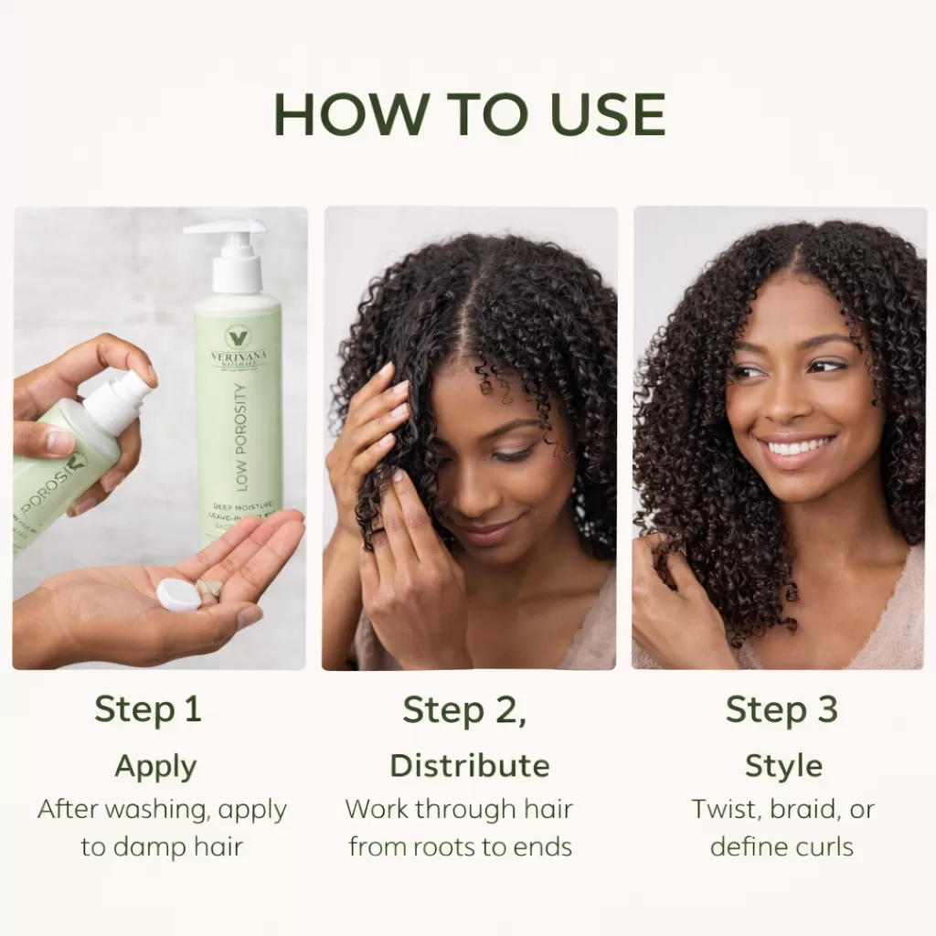 • Hair Type: Low-porosity curls, coils, and natural textures